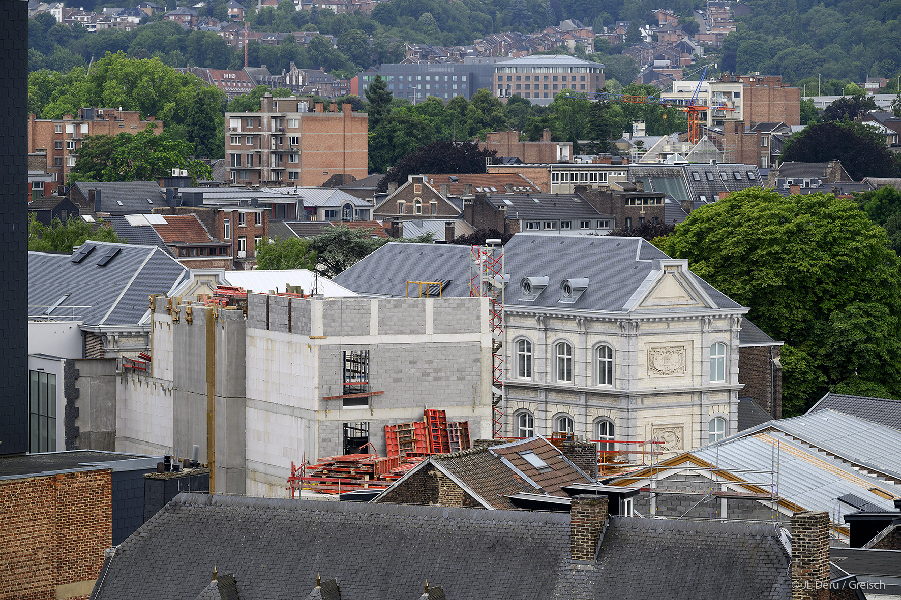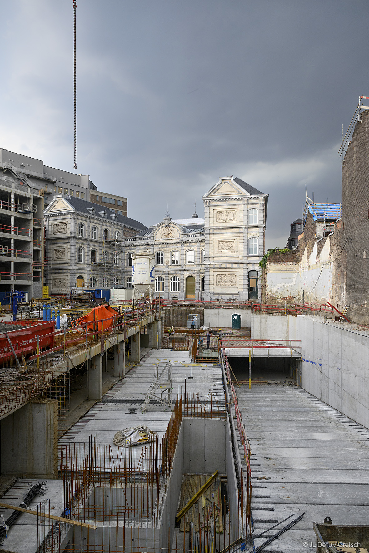 To extend the office space available in the main Montefiore building, a new office building is being constructed on the site to replace existing buildings of lesser interest that have been demolished. The structure of the offices is entirely prefabricated (floor slabs, columns, beams and walls). The former amphitheatre, also a listed building, has been completely renovated to become a conference centre. On the street side, the building, which is also listed, is to be renovated to house a gourmet restaurant.