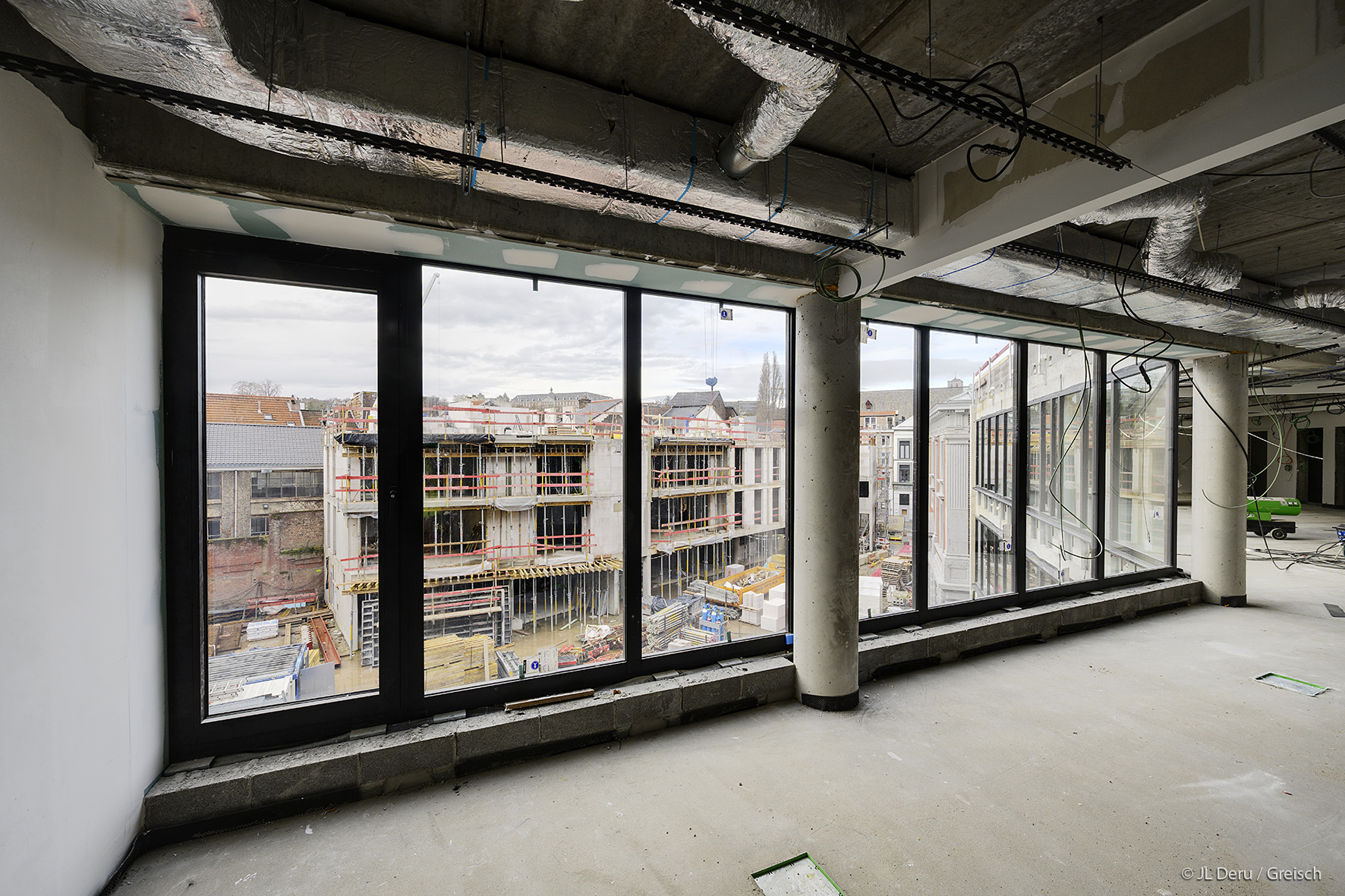 The former Montefiore Institute, a listed building with a high heritage value, located on rue St Gilles in Liège, is being completely renovated to bring together more than 500 RESA employees on the site. These people will be split between the Montefiore site and the adjacent boulevard d’Avroy site. A new atrium will be built between the two sites to connect the buildings. This connection consists of a central staircase and slender concrete footbridges that zigzag along the blind wall of Montefiore. To achieve this, it is necessary to reinforce the structures of the existing underground car park.