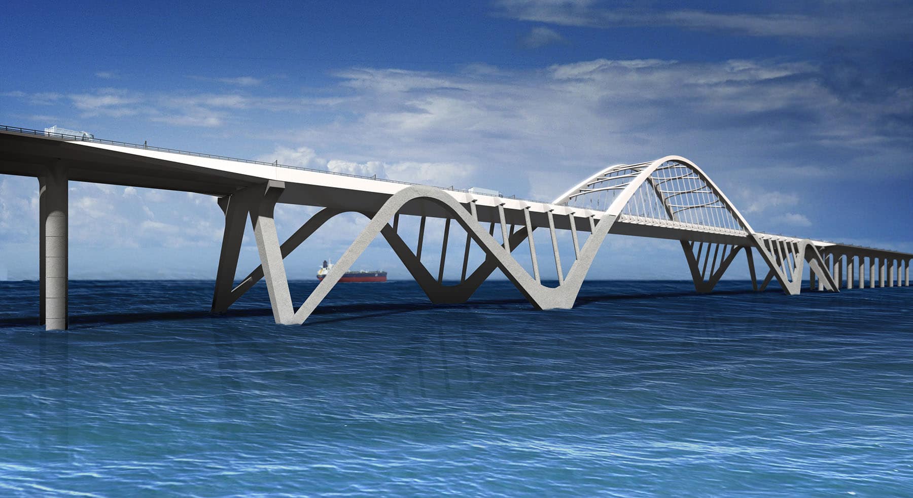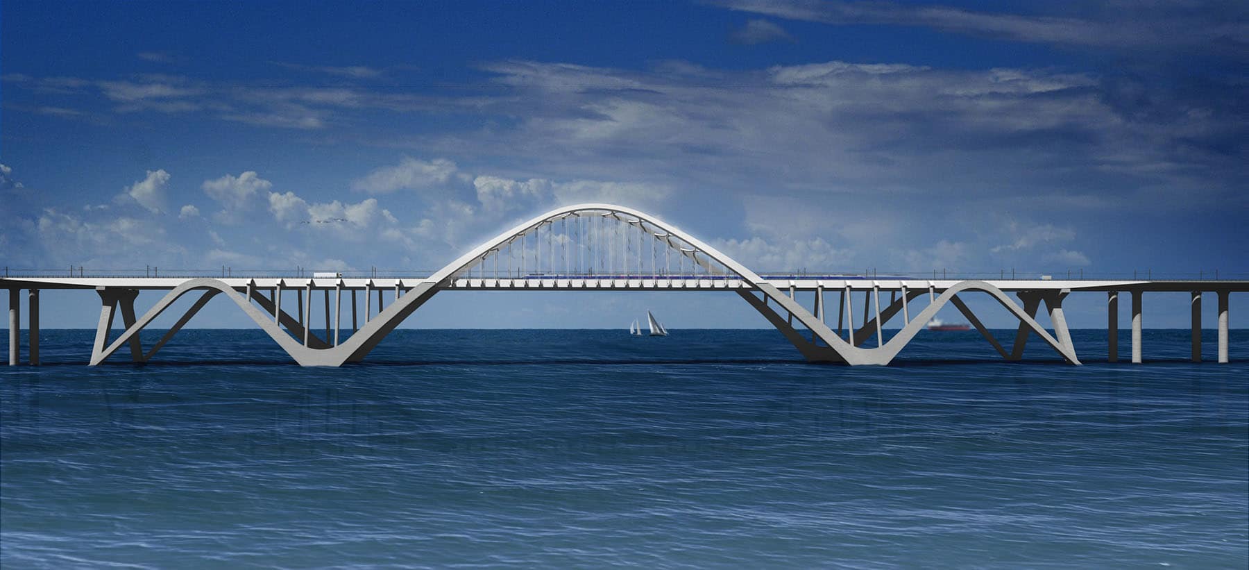 The Qatar Bahrain Causeway is an causeway between the two Arab states of Qatar and Bahrain. This link between the two countries would be approximately 40 km in length, and support both a road and a railway. Made up of viaducts on about 22 km, it contains two main bridges aiming to let free of support two maritime pass-through. These two main bridges, initially designed by a Danish Engineering Company, were optimized by Greisch using steel for all the main structures. The main span of the biggest bridge is 250 m long.