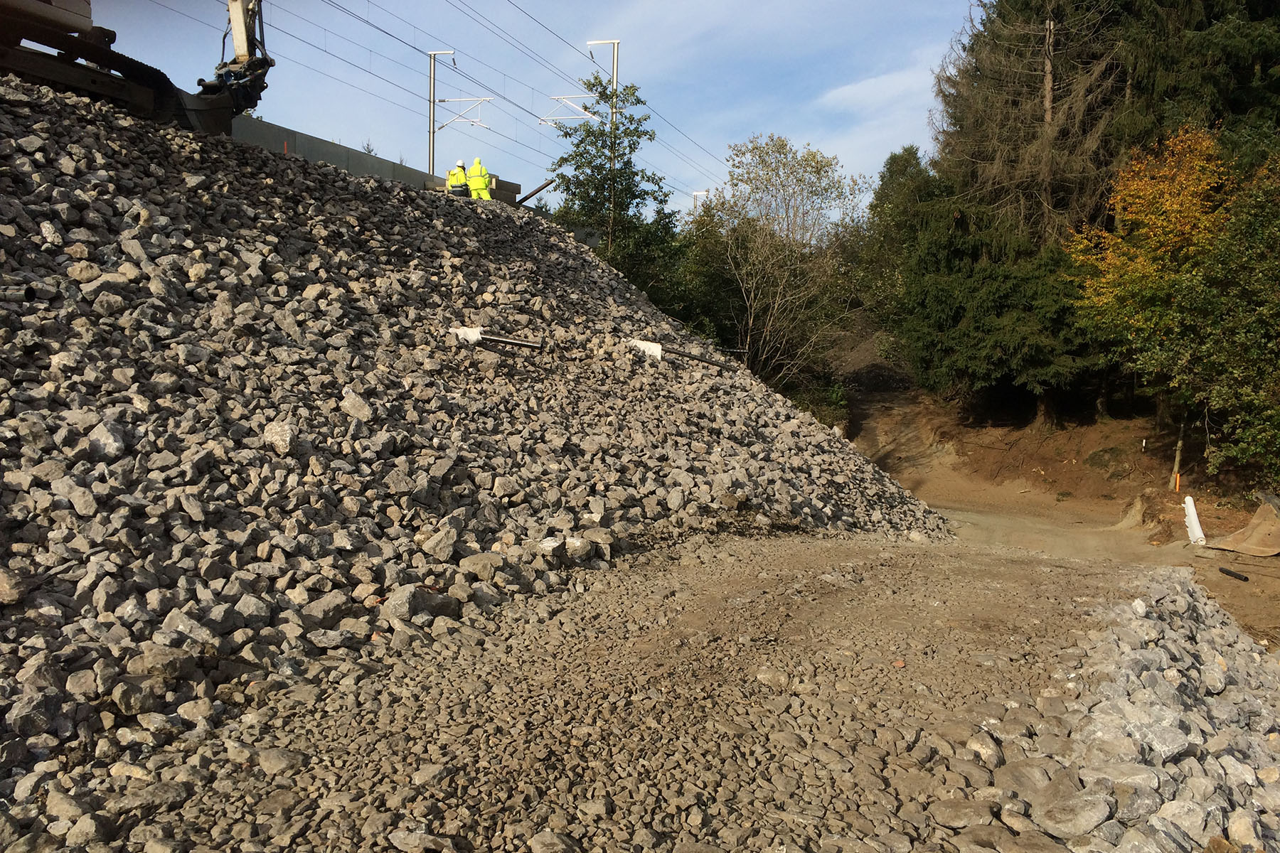 La solution proposée a permis de réaliser les travaux dans un délai très court, tenant compte de l’accès très difficile au site. La limitation de vitesse provisoire a pu être levée après seulement 3 semaines de travaux.