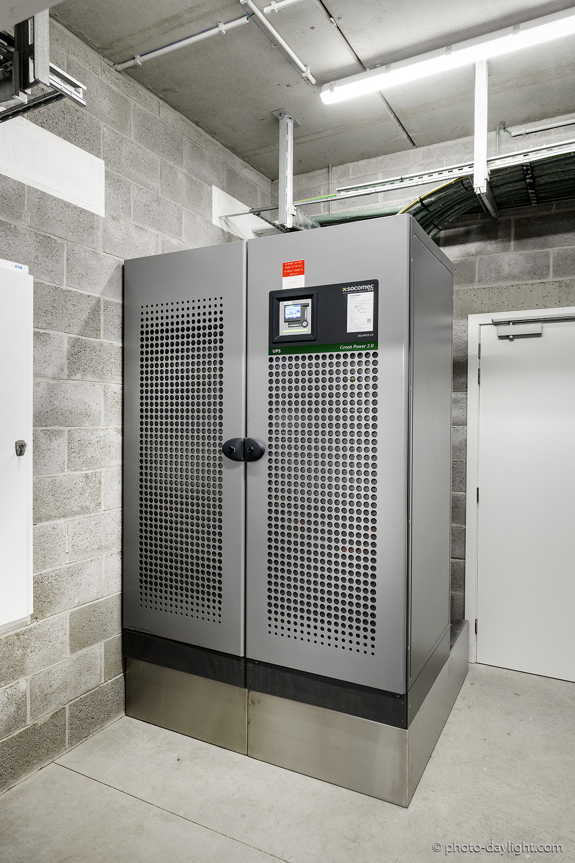 Le bâtiment est équipé d’une salle pour le data center classifié TIER III. Les alimentations électriques et les équipements de refroidissement sont redondants.