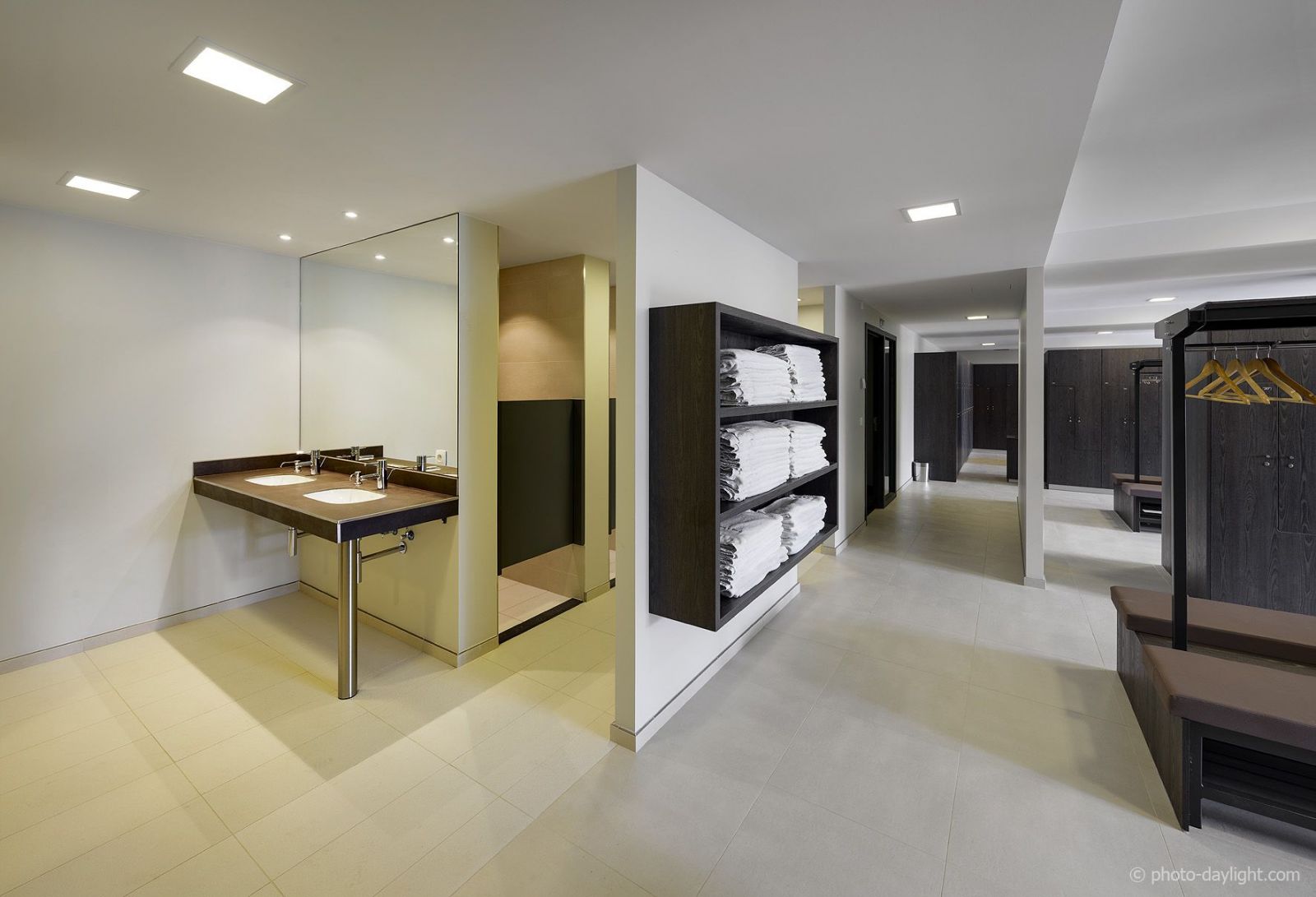 La ventilation des différentes entités du Club-House est assurée par des groupes de ventilation double flux avec récupérateur de chaleur à haut rendement (entre 75 et 90% suivant EN 308) équipés de by-pass. Ce système de ventilation permet d’assurer une qualité hygiénique élevée de l’air intérieur, tout en assurant une récupération d’énergie permettant de diminuer les besoins en chaleur de chauffage en hiver, et d’évacuer les surplus de chaleur en été. Les réseaux aérauliques sont équipés de registres autorégulants et d’isolement, de manière à adapter les débits de ventilation en fonction de l’occupation, et donc de diminuer les consommations électriques des ventilateurs.