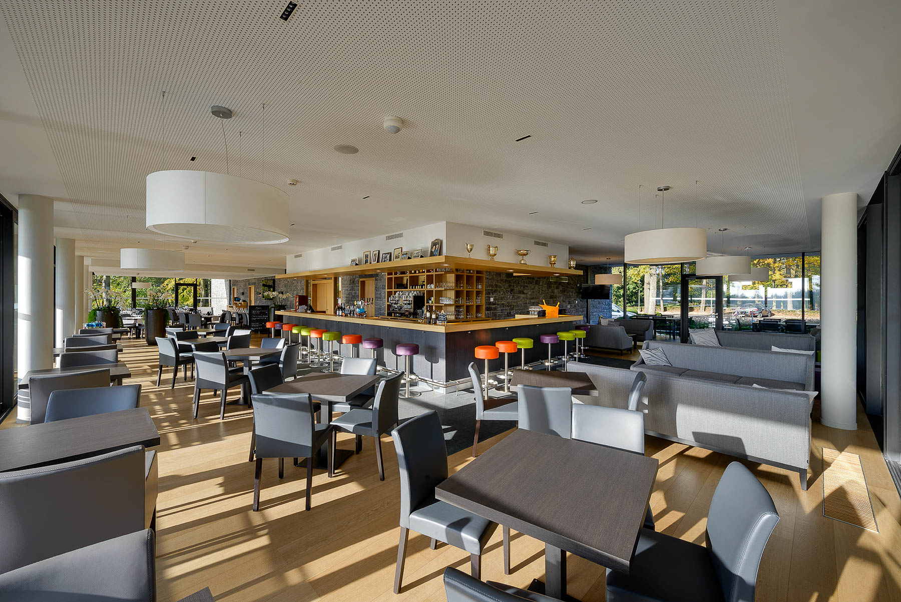 La démarche de conception proposée par le bureau Greisch s’est concrétisée en réduisant, en priorité, les besoins énergétiques du bâtiment grâce à l’optimisation de l’enveloppe et des protections solaires, permettant d’atteindre un niveau d’isolation thermique globale du bâtiment égale à K30, ce qui fait du Club-House un bâtiment « basse-énergie ».