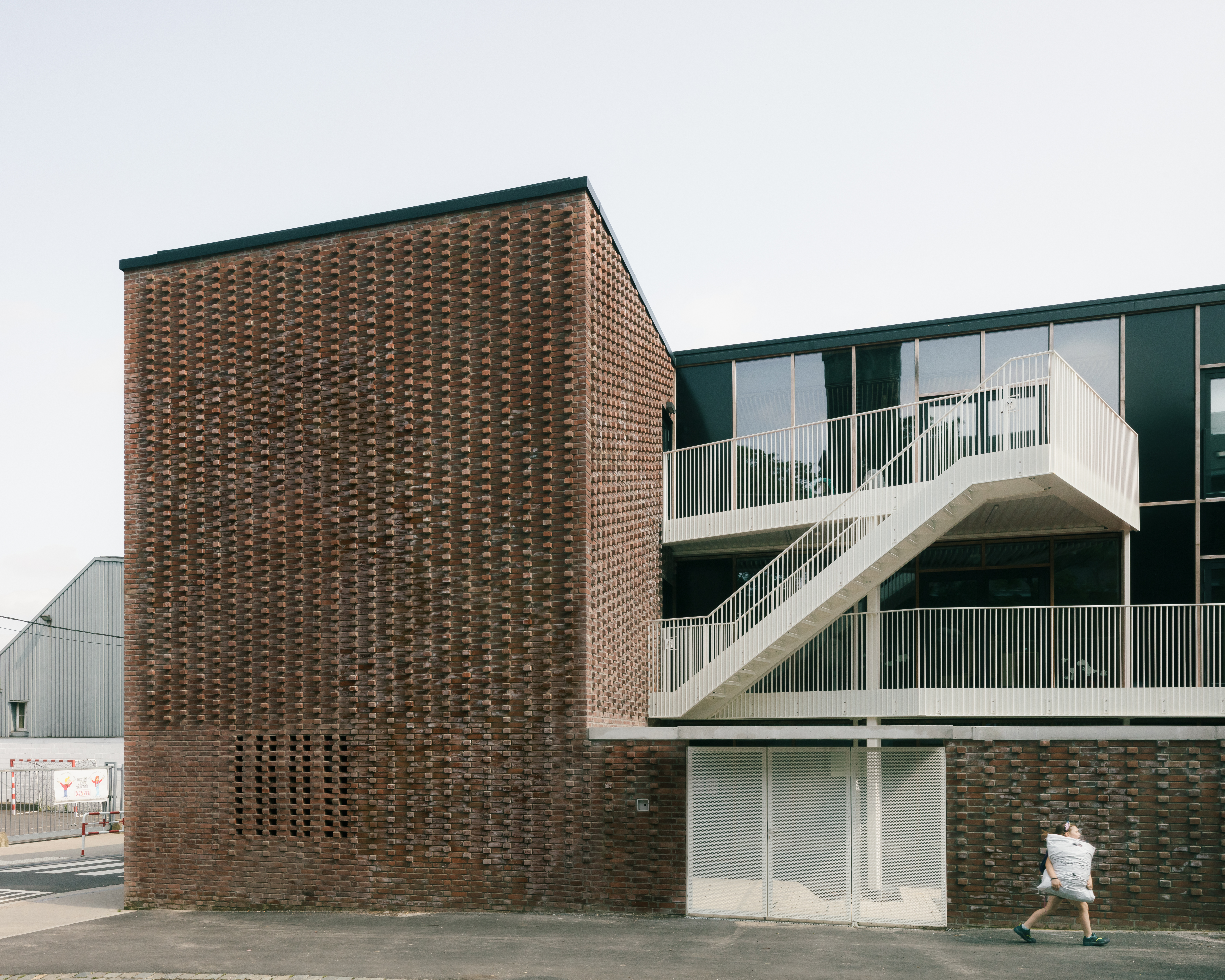 La crèche de 42 lits comprend trois niveaux hors sol (rez, +1, +2) et un en sous-sol pour une surface nette de 687 m². Le bâtiment se veut compact dans le but d’optimiser sa passivité, mais aussi pour s’intégrer dans le site entre des bâtiments existants. Il présente une grande façade ouverte sur la rue Sainte-Walburge. Côté place Saint-Walburghe, on trouve une cour, un jardin intérieur et des terrasses pour les différents niveaux d’accueil.