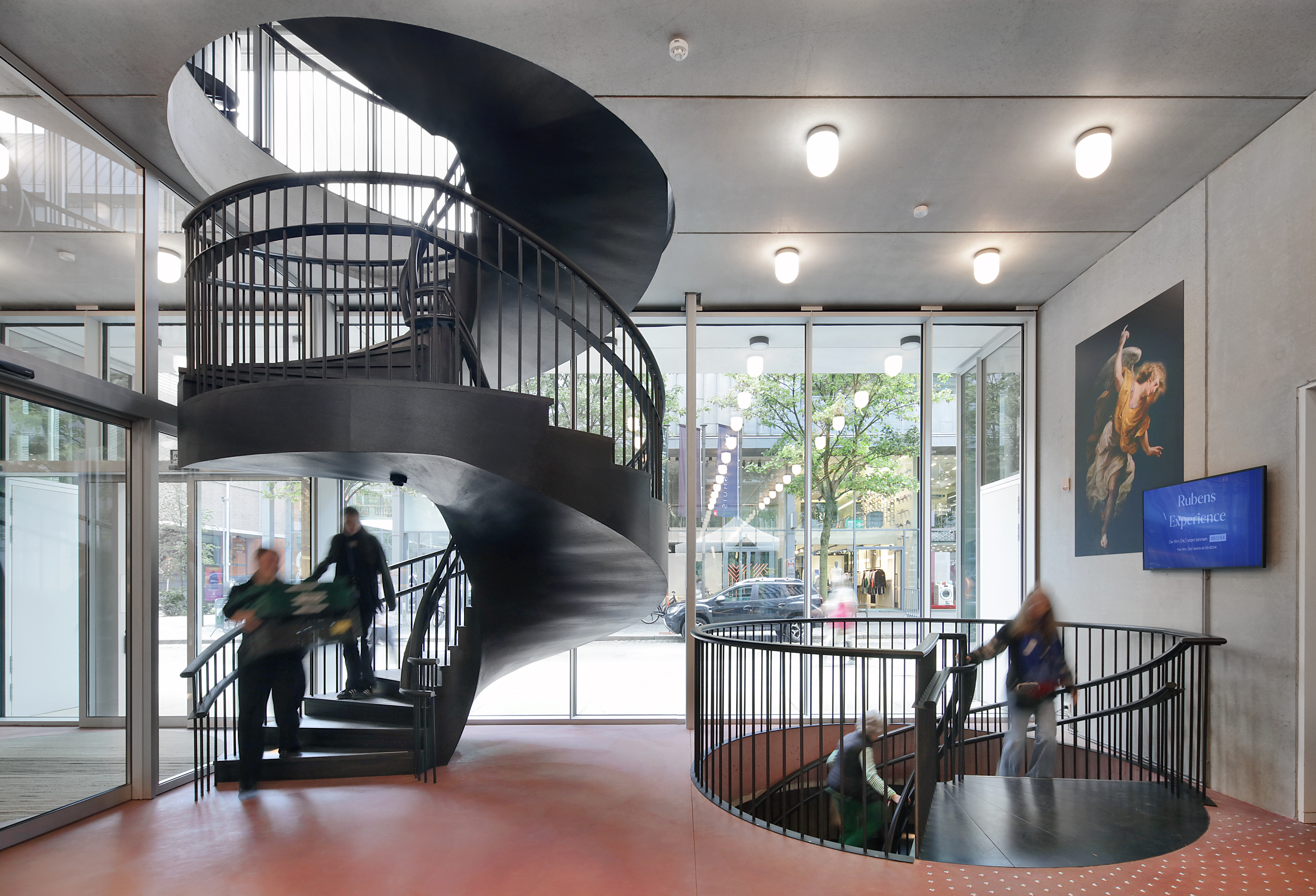 Hormis la fonction d’accueil, le nouveau bâtiment comprend un centre multimédia, une cafétéria, une salle de lecture et la collection de la bibliothèque de Rubenianum.