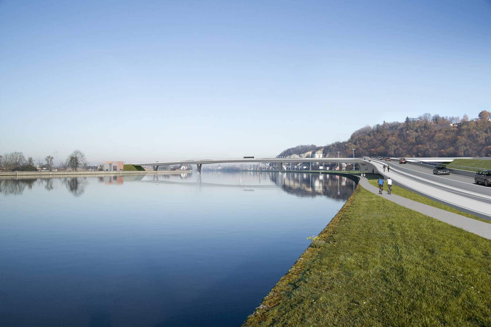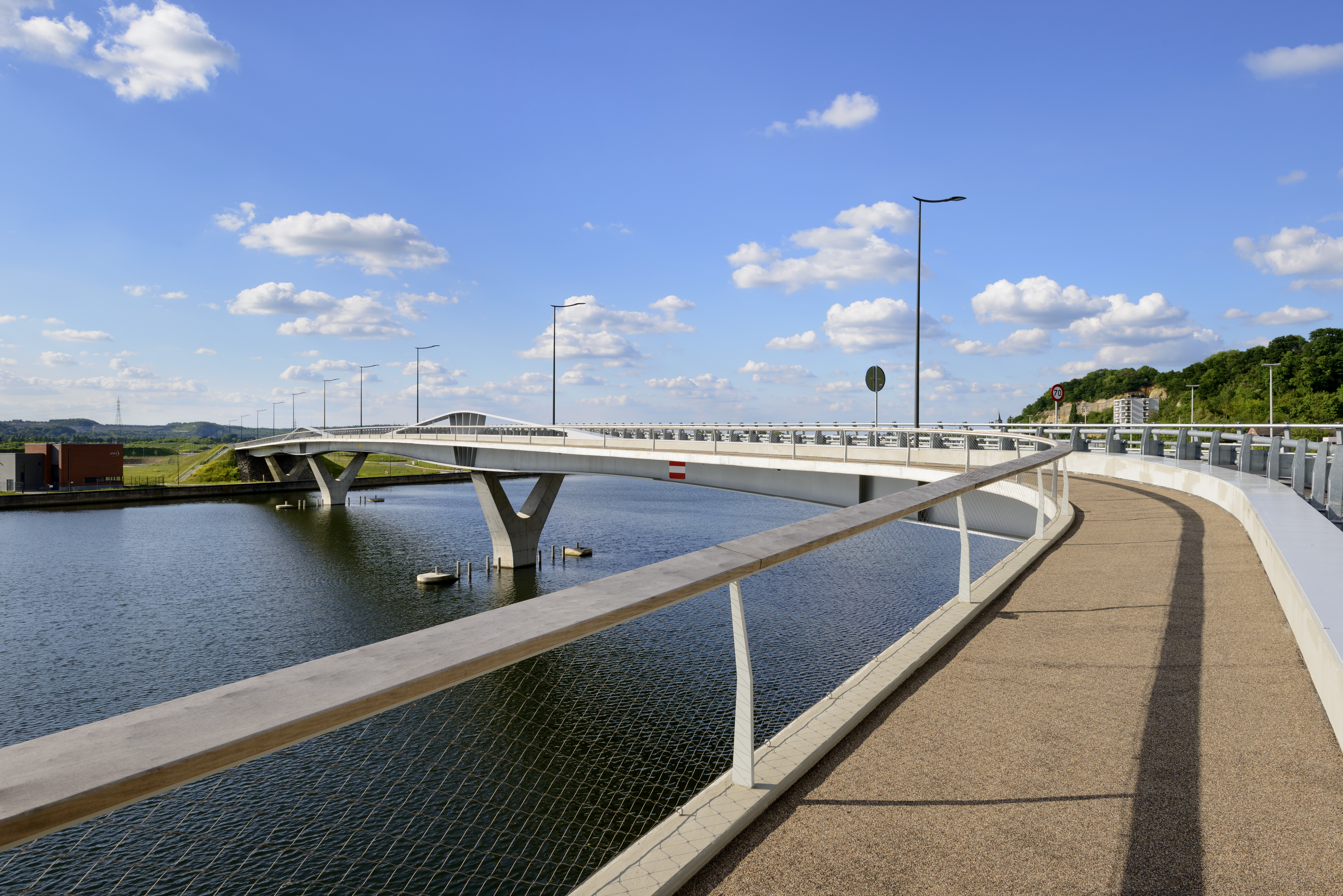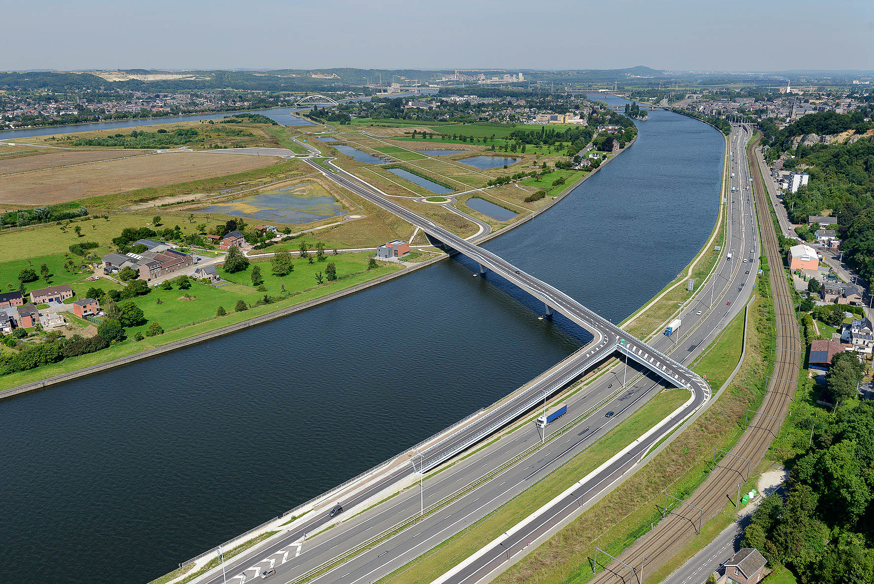 Dans le cadre de la réalisation de la plateforme multimodale Trilogiport, un nouveau pont franchissant la Meuse ainsi qu’un demi-échangeur d’autoroute sont construits afin d’assurer un accès direct à cette plateforme pour les véhicules lourds en provenance de Liège ou des Pays-Bas.