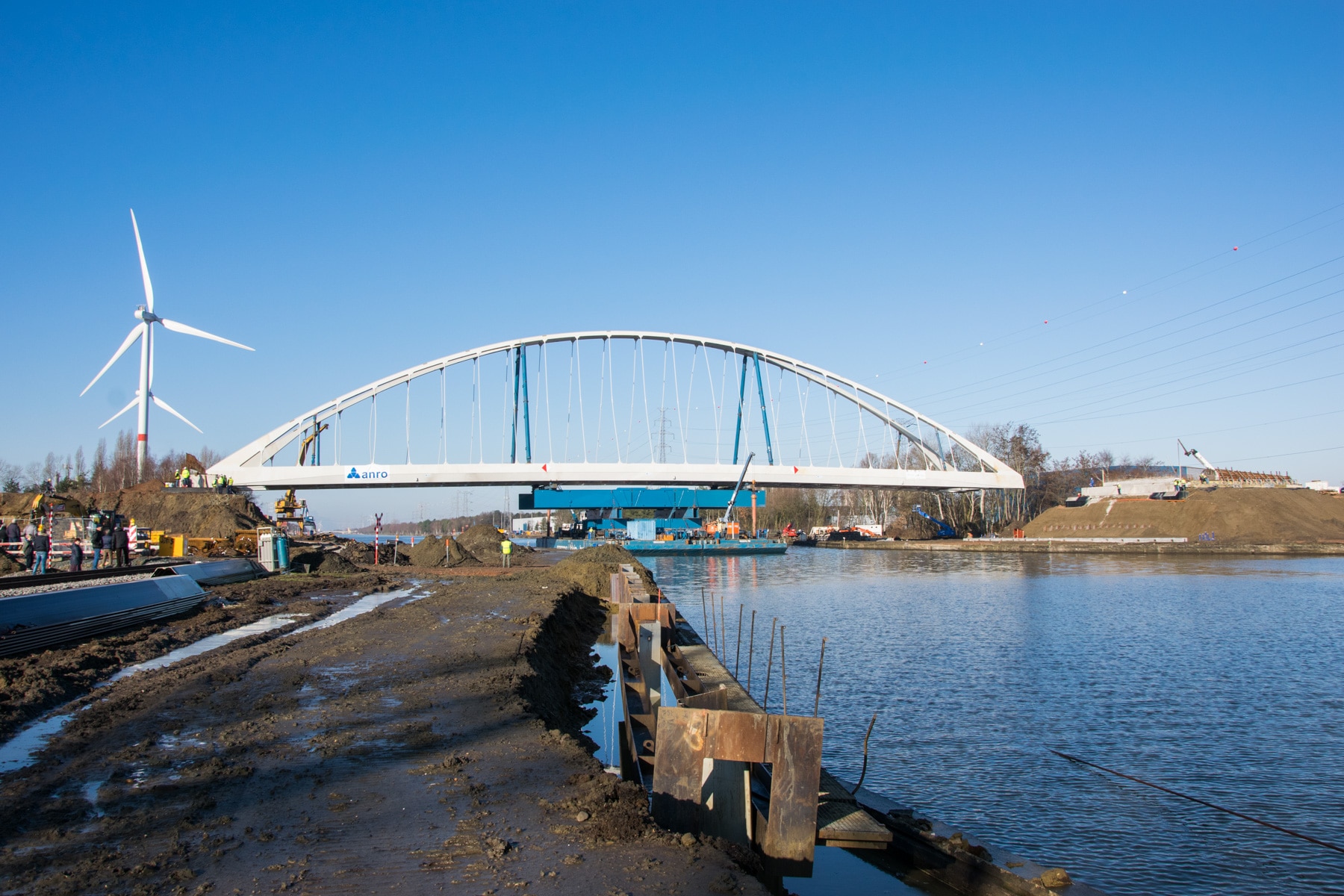 Certains ponts sont assemblés in situ au-dessus du canal ; d’autres sont construits sur berge et ensuite amenés en place avec un ponton. Le pont BR43 (Herentals) est d’abord mis en service en position provisoire, et est ensuite déplacé avec des kamags en position définitive après reconstruction des culées.