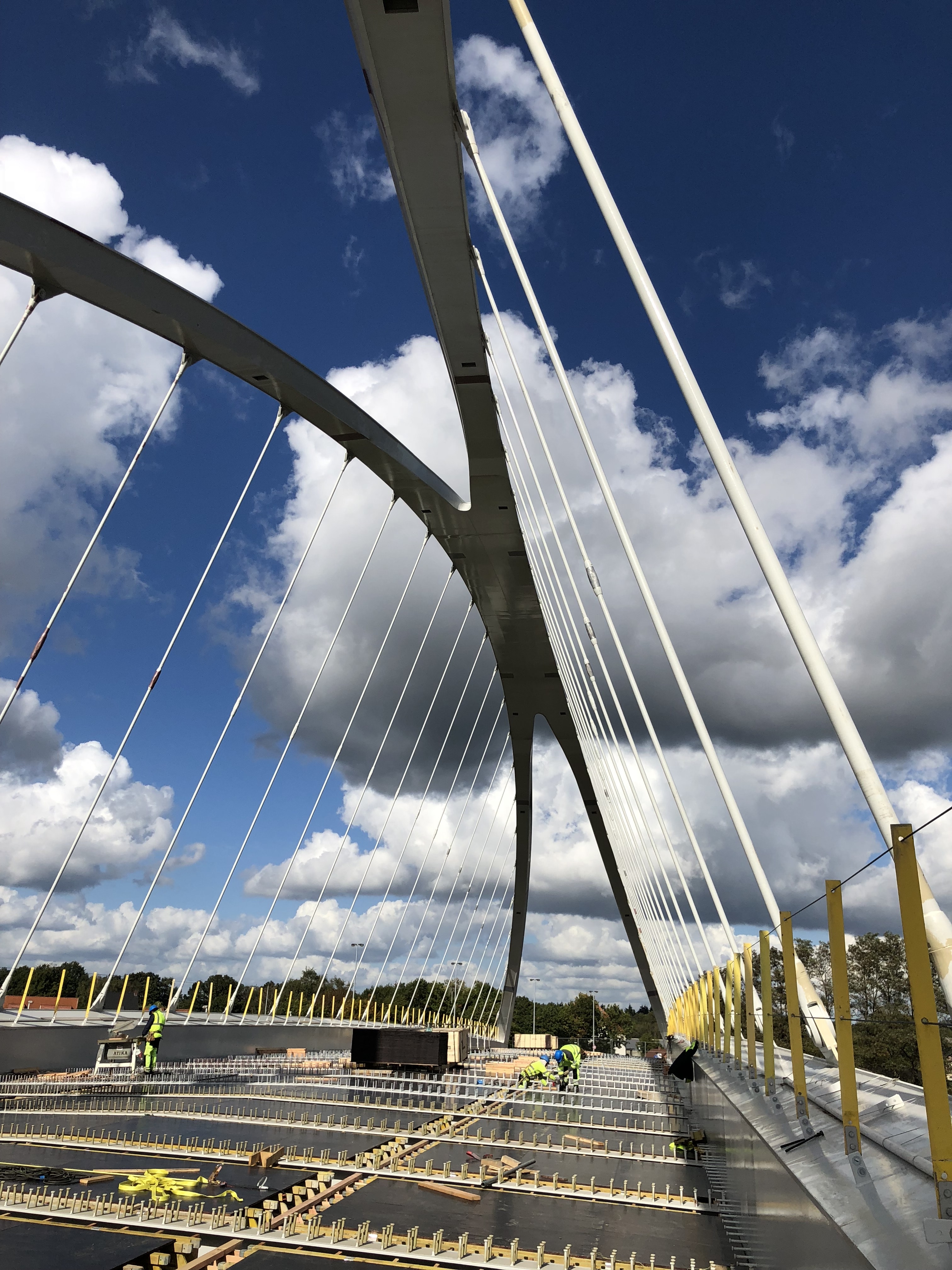 Il s’agit de ponts bowstring comportant deux bandes de circulation et deux pistes cyclables/trottoir de part et d’autre, séparés par une glissière en béton. Les deux arcs inclinés, métalliques, fusionnent en leur sommet ; les suspentes entre-distantes de 5 m sont parallèles dans le plan des arcs. Le tablier est constitué de deux poutres caissons métalliques latérales de 2,4 m de hauteur, d’entretoises métalliques en I, entre-distances de 3,7 m environ et d’une dalle en béton de 24 cm d’épaisseur.