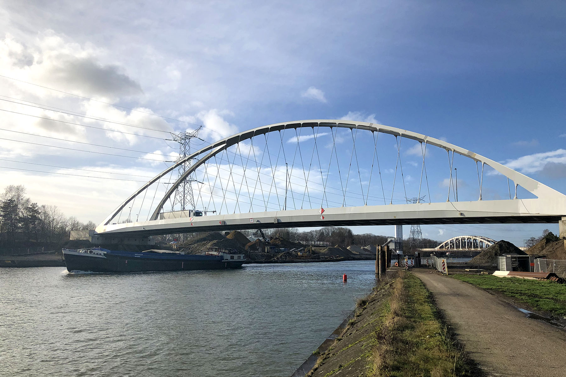 Dans le cadre de la mise au gabarit (hauteur 9,1 m) pour la classe Vb du canal Albert entre Liège et Anvers, la majorité des ponts doivent être soit rehaussés, soit remplacés. Le remplacement de sept ponts a été confié au bureau greisch dans le cadre d’un contrat DBFM.