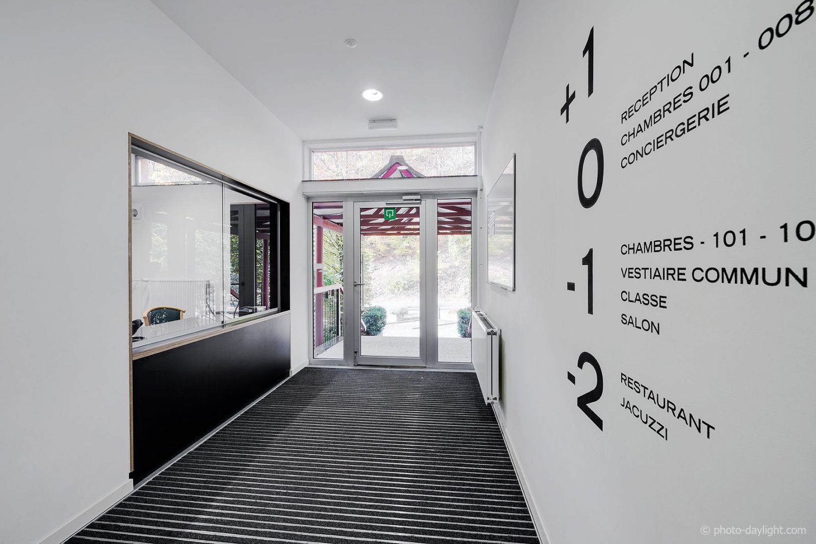 - 21 chambres de luxe à 3 lits avec salle-de-bains, wc, frigo, tv ; certaines avec terrasse (dont 1 avec accès aux personnes à mobilité réduite) ;