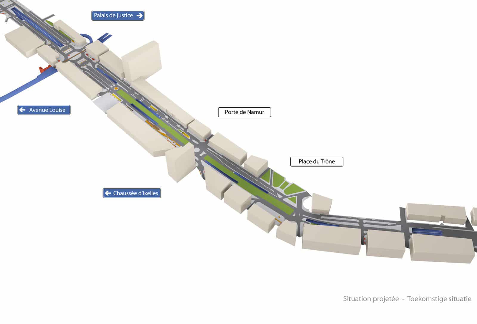 Ouvrage n° 3 : mise en tunnel des voies de circulation rapides entre le tunnel de la Porte de Namur et le tunnel Trône dans les 2 sens de circulation existants.